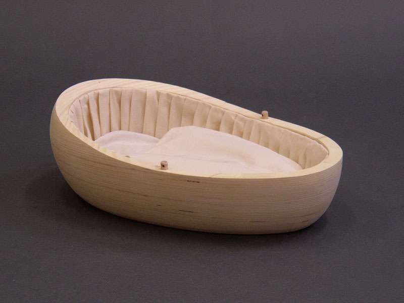 Het Boswitje is gemaakt van populierenhout. Het is bolvormig en ongelakt. De vorm voelt prettig en zacht aan. De bekleding bestaat uit een matrasje gevuld met stro en een dekbedje van flanel gevuld met schapenwol.